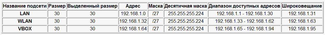 Разобьем нашу сеть "192.168.1.1/24" на подсети | LAN | WLAN | VBOX | с помощью "VLSM каклькулятора".