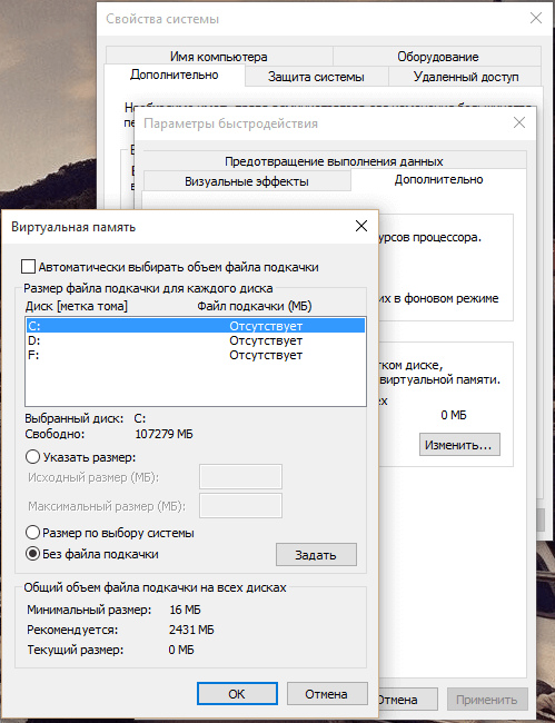 Оптимизация 3. Отключение файла подкачки