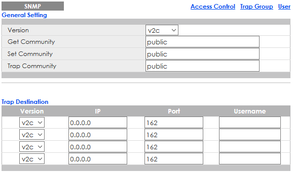 Включаем на устройстве сервис "SNMP" и настраиваем. Переходим в группу настроек. Стандартный пароль от "Community" - public. Его следует изменить на свой.
