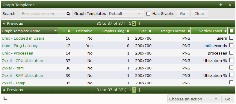 В Cacti есть возможность применить стандартные наборы шаблонов для устройств. К ним относятся - Cisco Router, Generic SNMP Device, Local Linux Machine, Net-SNMP Device и Windows Device. Они охватывают достаточно большую категорию "OID" по сбору различных данных. Но если устройство использует нестандартный "OID", или его просто нету в стандартных наборах, то понадобиться создать свой, в котором будут указаны необходимые "OID" для сбора данных.