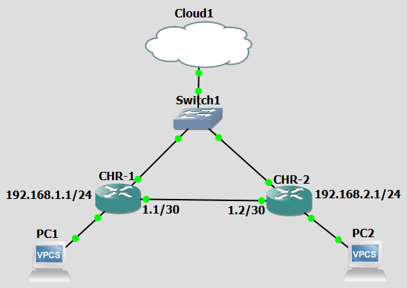 CHR-1 и CHR-2 будут соеденены между собой через интерфейс ether5.