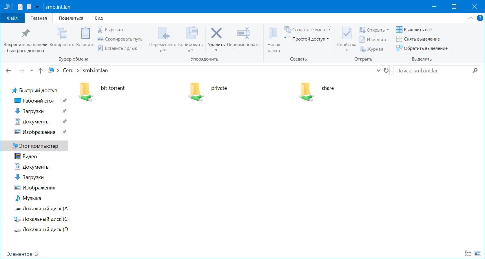 Теперь, пользователи "smb" и "private" будут иметь доступ только к своим директориям "share" и "private".