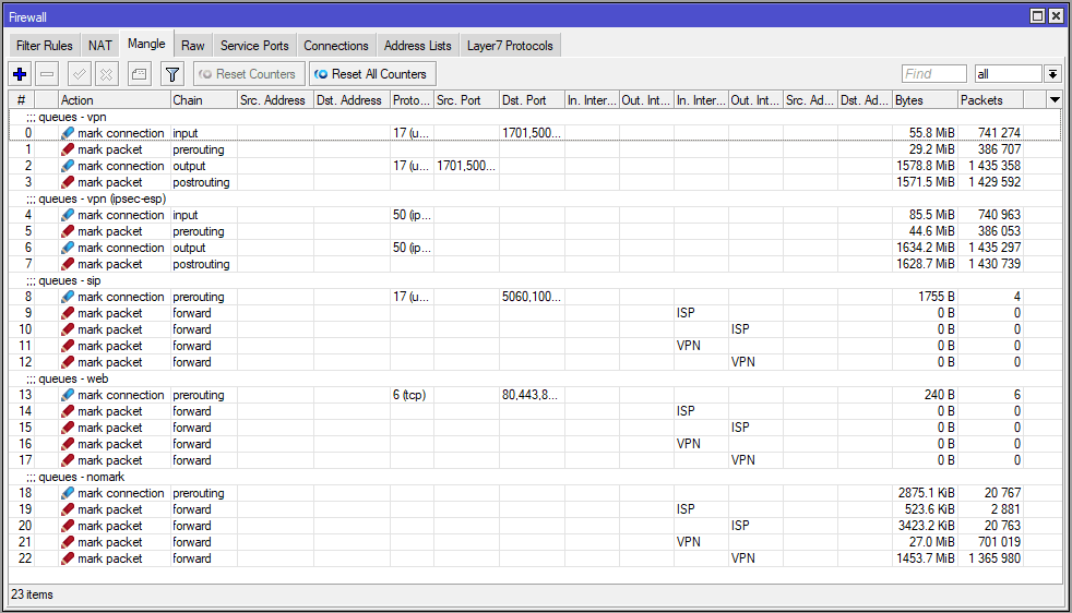 add action=mark-connection chain=input comment="queues - vpn" dst-port=1701,500,4500 new-connection-mark=queues_vpn_in passthrough=yes protocol=udp