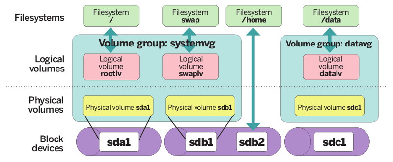 LVM позволяет уйти от понятия физический раздел жесткого диска. Мы приходим к логической структуре и в этой логической структуре, мы можем иметь столько дисков и разделов, сколько нам необходимо, и как угодно ими распоряжаться.