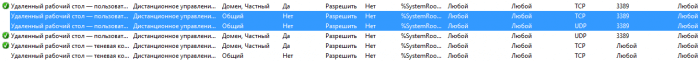 - Далее открывем Брандмауэр и переходим в Дополнительные параметры -> Правила для входящих подключений ищем настройку Удаленный рабочий стол с Профилем Общий и Включаем.