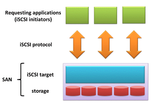 При использовании iSCSI данные между сервером и системой хранения передаются блоками, в необработанном виде. Это позволяет использовать SAN практически так же, как если бы они были подключены к серверу напрямую, а не по сети. Хост-система может создавать на SAN логические разделы, форматировать их и использовать как обычные локальные жесткие диски. В этом заключается основное отличие SAN от сетевых хранилищ (Network Attached Storage, NAS), которые работают на уровне файловой системы и используют протоколы передачи файлов, такие как SMB или CIFS.